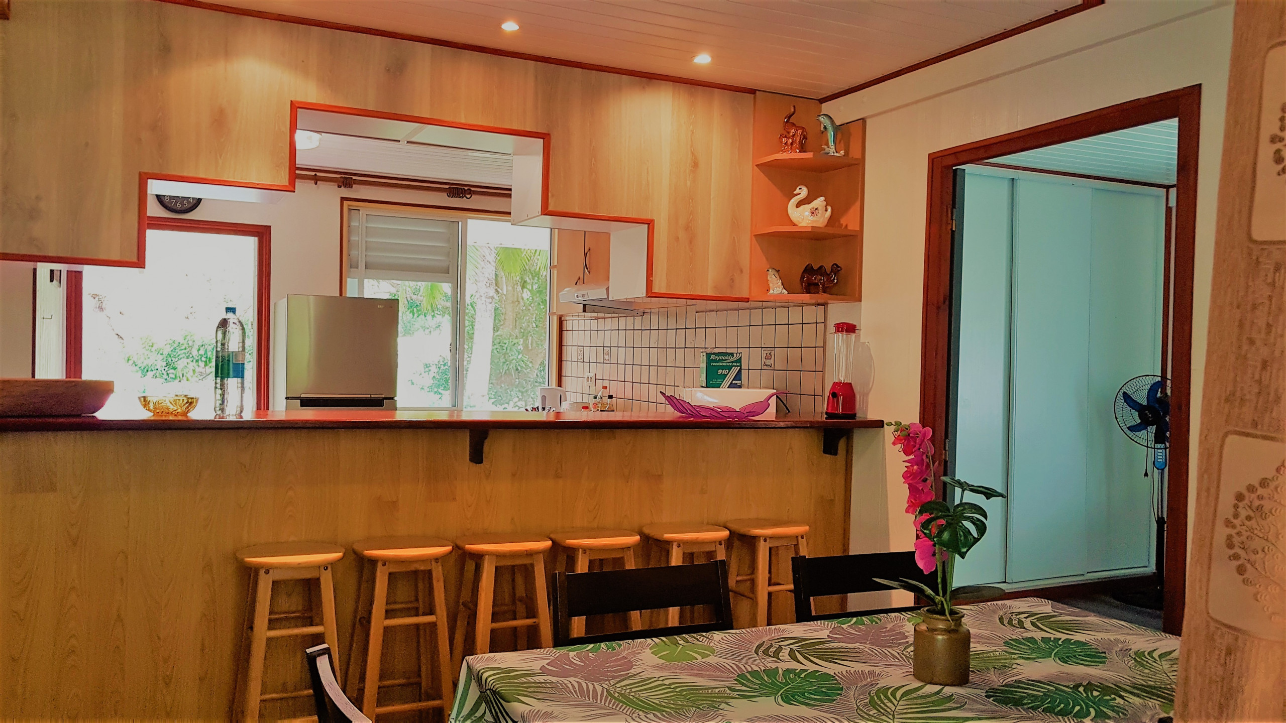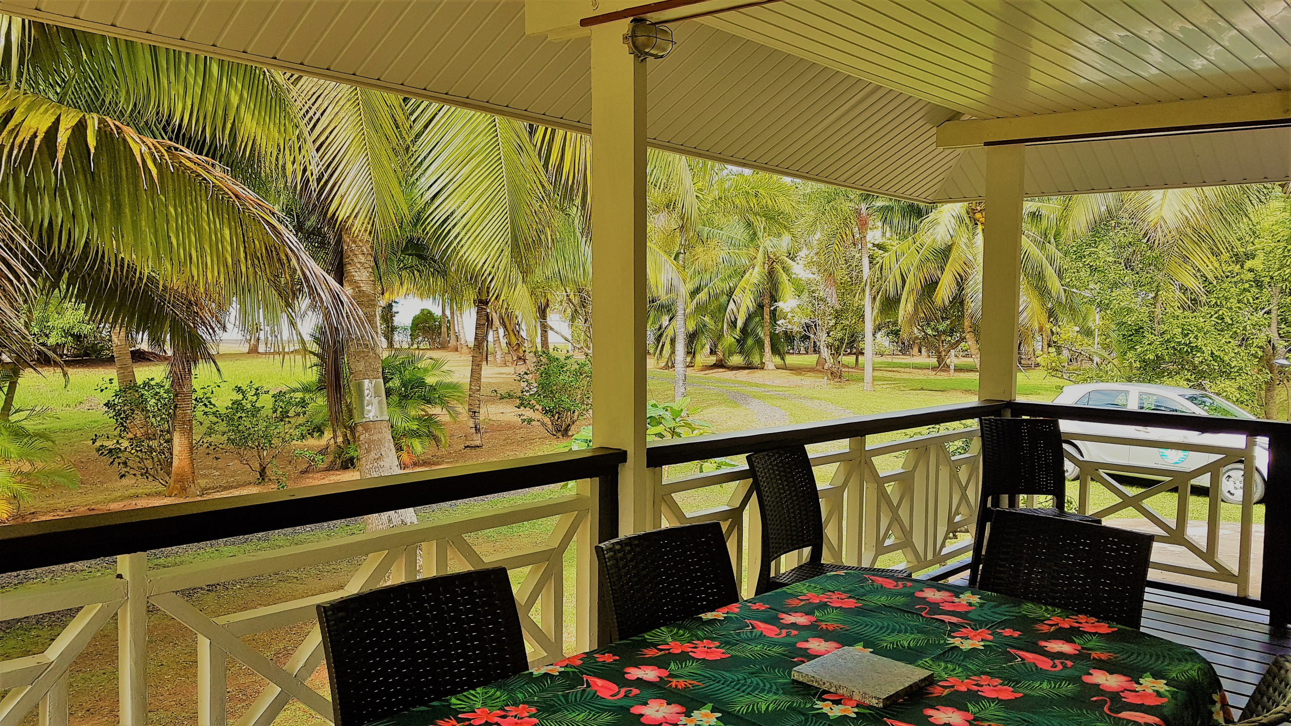 Seu lugar favorito será a varanda onde poderá relaxar, fazer suas refeições e preparar seus churrascos... A villa também possui um jardim muito grande arborizado que oferece um terreno de jogo ideal para as crianças. No fundo da propriedade há o rio Maroe, um local carregado de "Mana" e um plantação de noni.