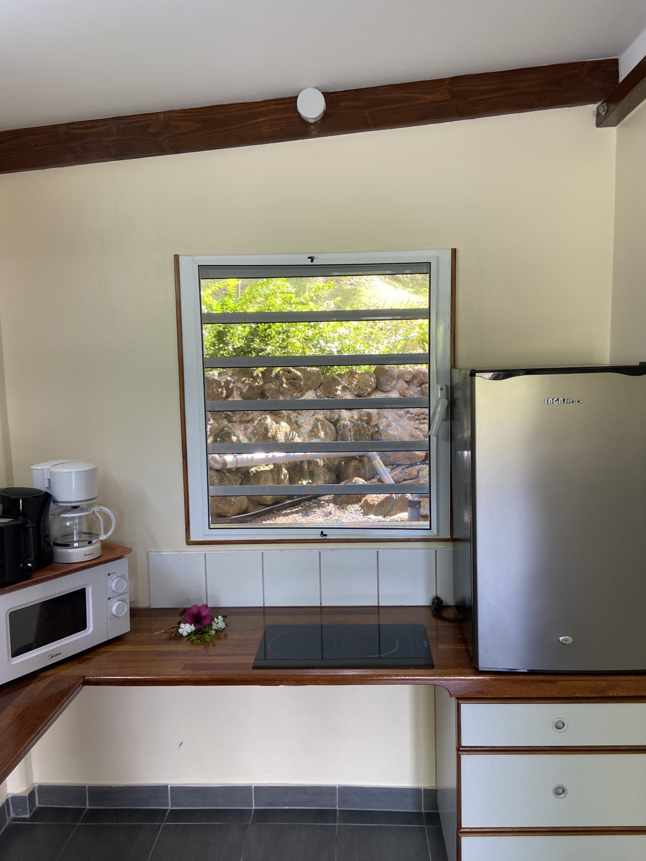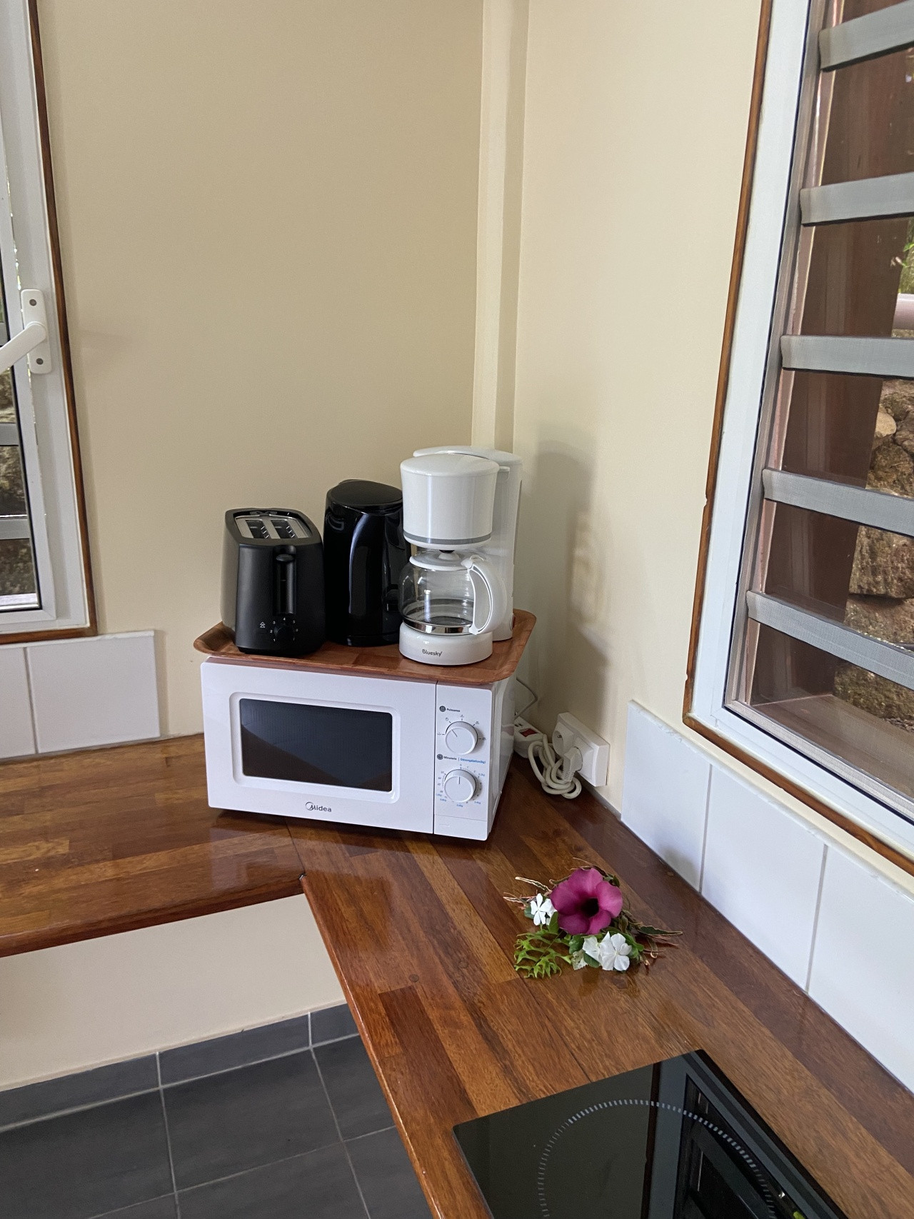 O Estúdio é muito confortável, com roupa de cama de qualidade, ar-condicionado no quarto e banheiro privativo com água quente, chuveiro e WC. A decoração é clean e elegante com toques Polinésios muito apreciados. Internet é gratuita em wifi durante sua estadia.