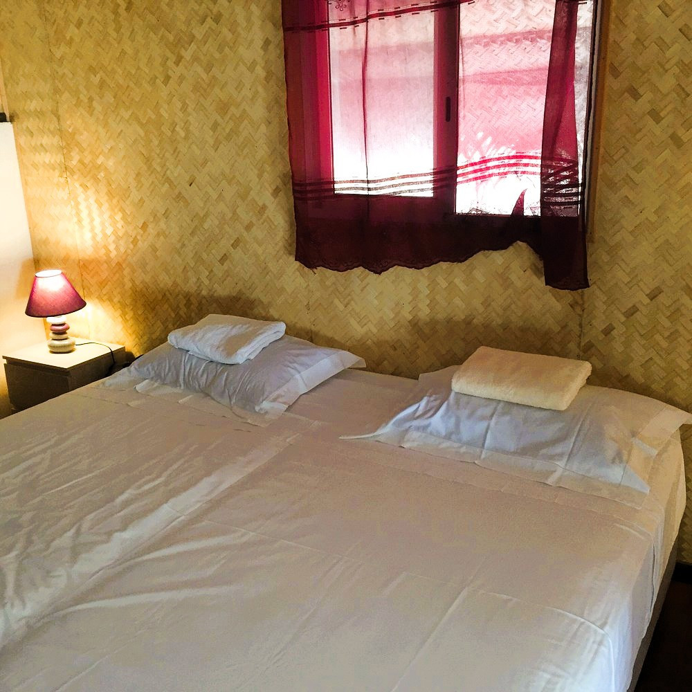 Este bangalô à beira da lagoa pode acomodar até 4 pessoas com sua grande cama de casal e beliches. Perfeito para famílias ou pequenos grupos. Desfrute do conforto de um banheiro privativo equipado com chuveiro, banheiro e água quente solar, em um espírito simples, ecológico e prático.