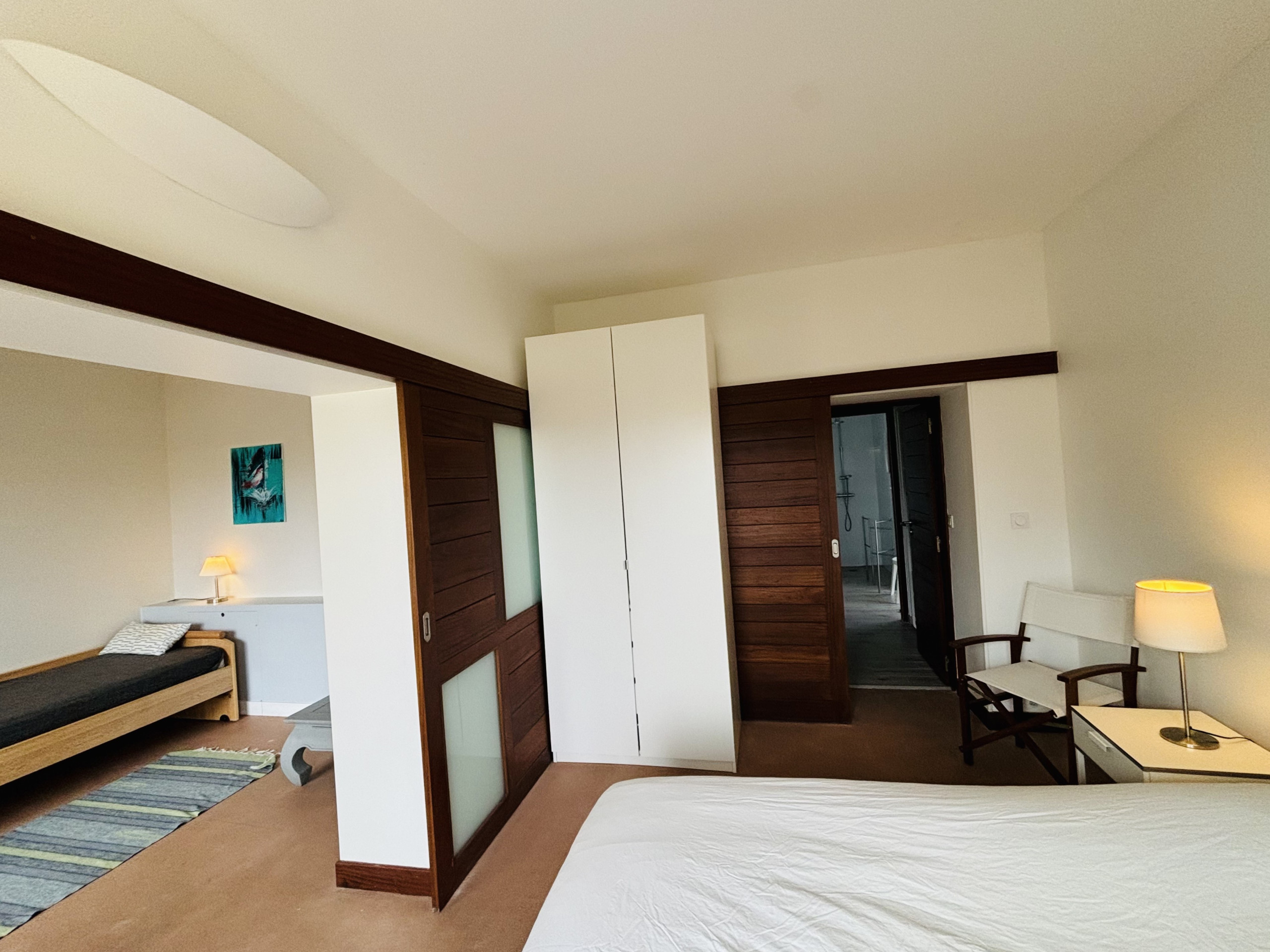 - Quarto 3 é familiar: cama de 160 x 200 e cama de 90 x 190, pode ser dividido em 2 espaços com um painel deslizante.