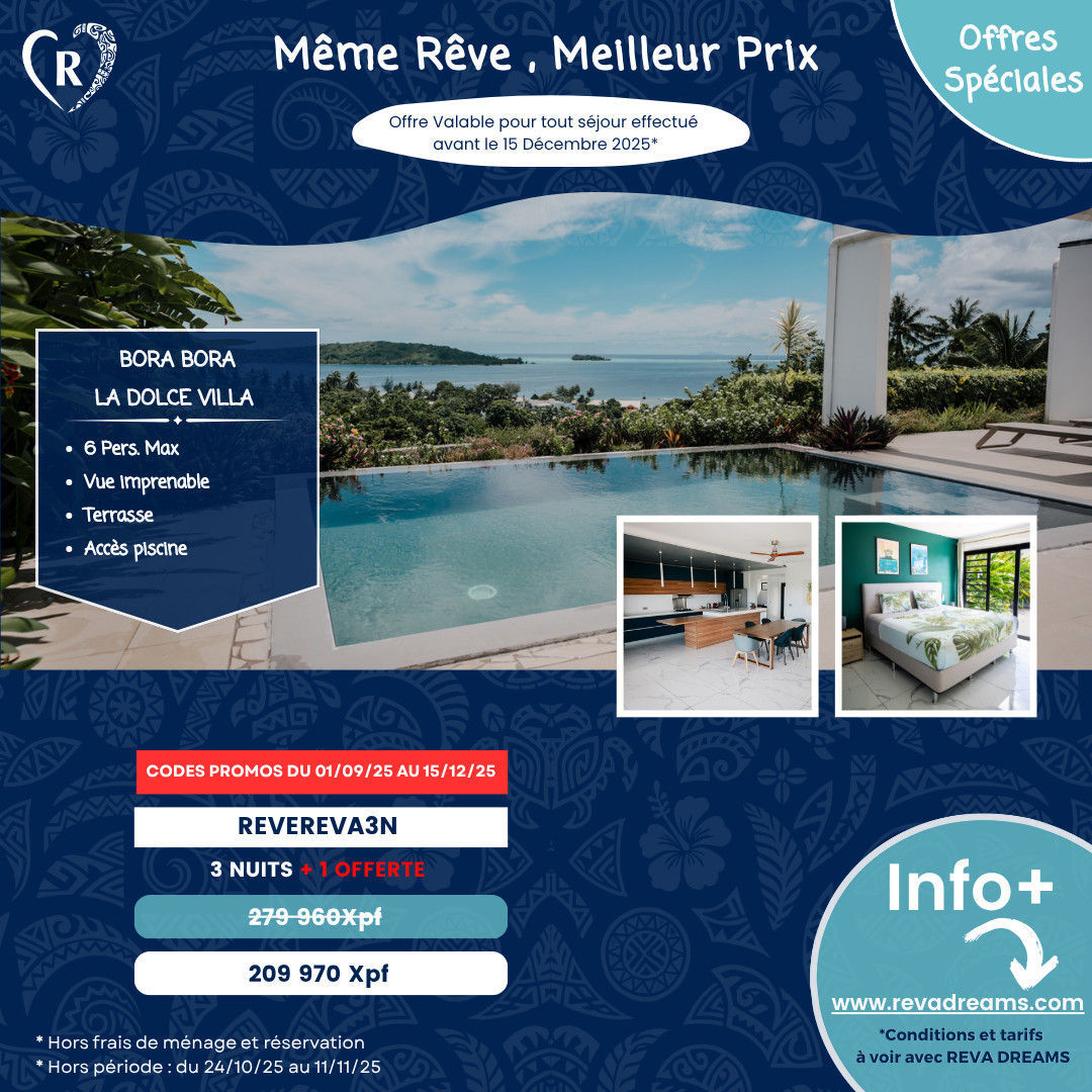 Profitieren Sie von außergewöhnlichen Rabatten auf Ihren Aufenthalt in Bora Bora bei jeder Buchung, die bis zum 15. Dezember 2025 erfolgt, ausgenommen Schulferien und Feiertage.