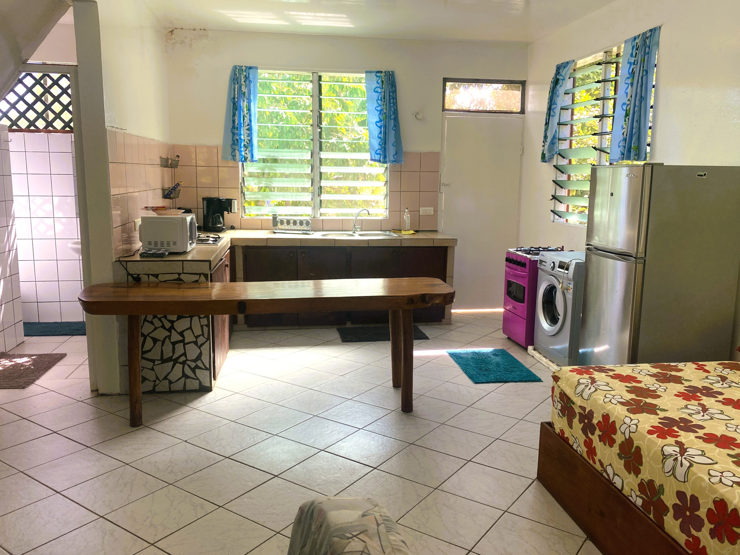Der wahre Schatz des Tipanier House liegt in seinem weitläufigen Garten von über 1.000 m². Hier bricht die tropische Flora in einer Symphonie von Farben und Aromen aus, während die Obstbäume sich sanft im Rhythmus der Brise wiegen und Ihnen ihre schönsten Früchte bringen werden. Eine wahre Oase der Ruhe, perfekt für einen meditativen Spaziergang oder um sich einfach in der Schönheit der umgebenden Natur zu verlieren.