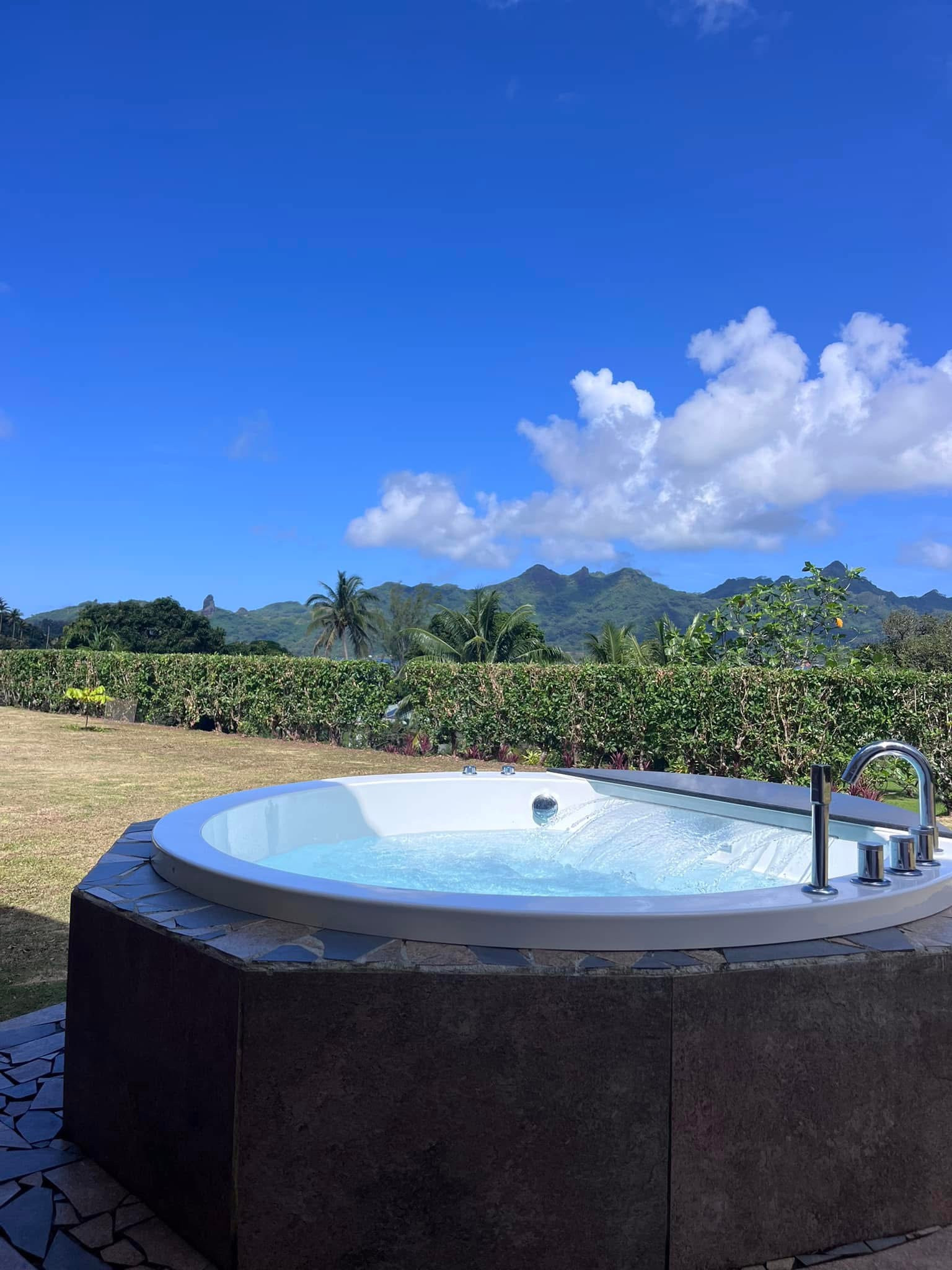 Ihr Lieblingsort wird die Terrasse sein, wo Sie sich entspannen, Ihre Mahlzeiten einnehmen und Barbecues zubereiten können... und vor allem den zur Verfügung stehenden Whirlpool genießen! Die Villa verfügt auch über einen sehr großen bewaldeten Garten, der einen idealen Spielplatz für Groß und Klein bietet. Unterhalb des Grundstücks befindet sich der Fluss Maroe, ein Ort voller "Mana" und eine Noni-Plantage.