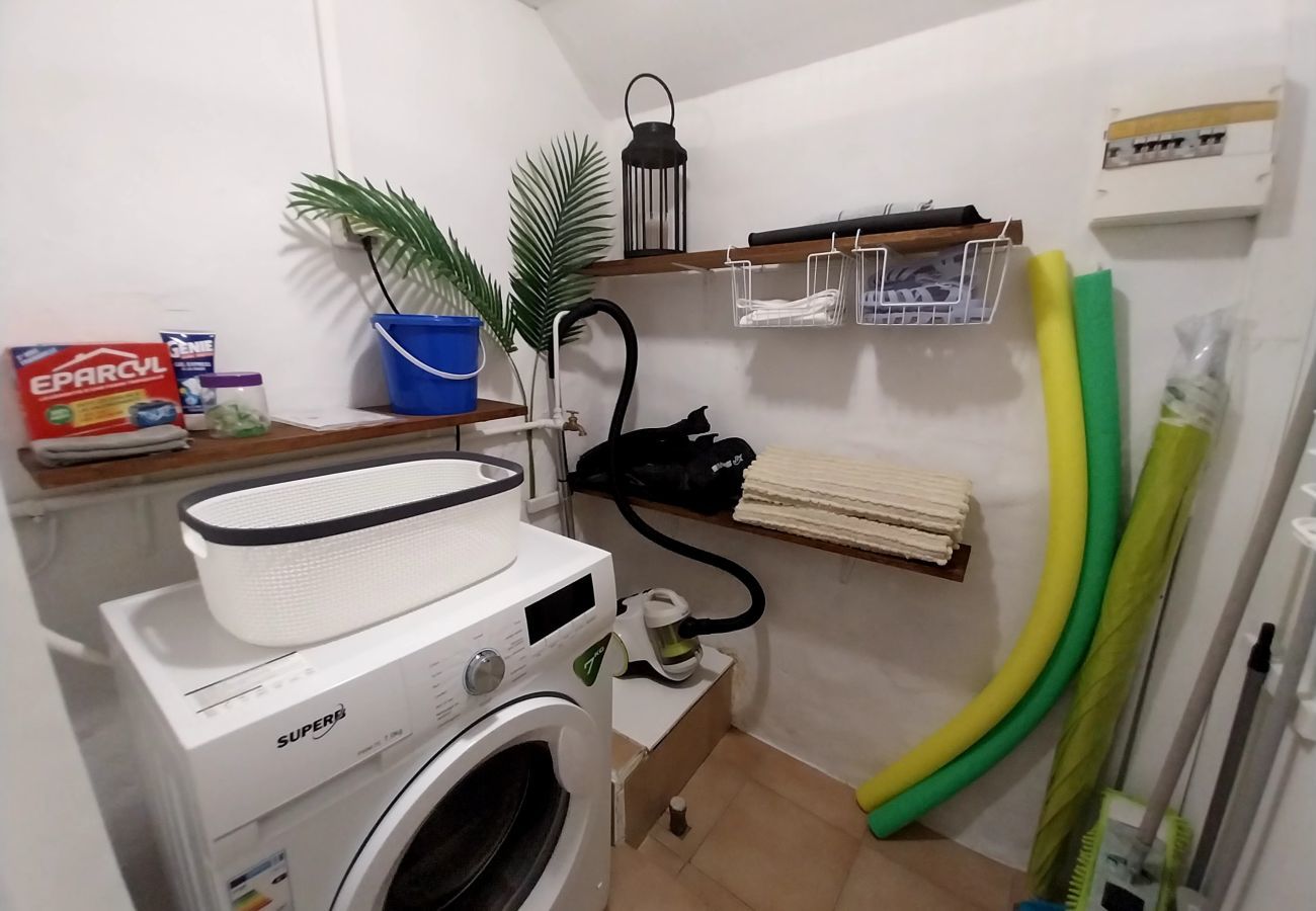 Dieses komfortable und gut eingerichtete Haus empfängt Sie in einem liebevoll dekorierten Zimmer. Es ist geräumig und mit einem orthopädischen Queensize-Bett ausgestattet, verfügt aber auch über Stauraum und eine erste Terrasse mit Liegestuhl für Ihre Entspannungsmomente. Das Badezimmer verfügt über ein Waschbecken mit Spiegel, eine Dusche, eine Toilette sowie eine Waschküche mit Waschmaschine, um Ihnen optimalen Komfort zu bieten.