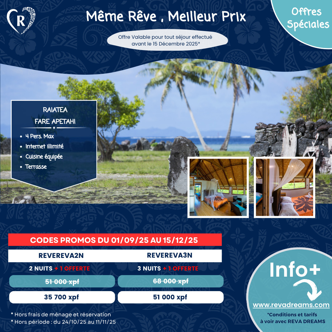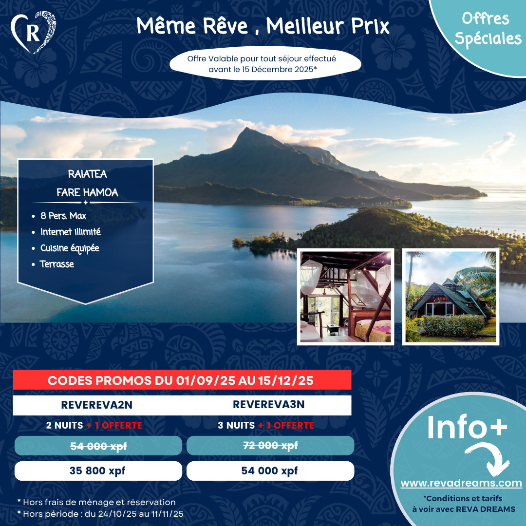 ✨ Whether you dream of sailing a sacred river, exploring lush valleys or diving into Polynesian history at the heart of the Taputapuātea marae, live the same dream, at a better price.