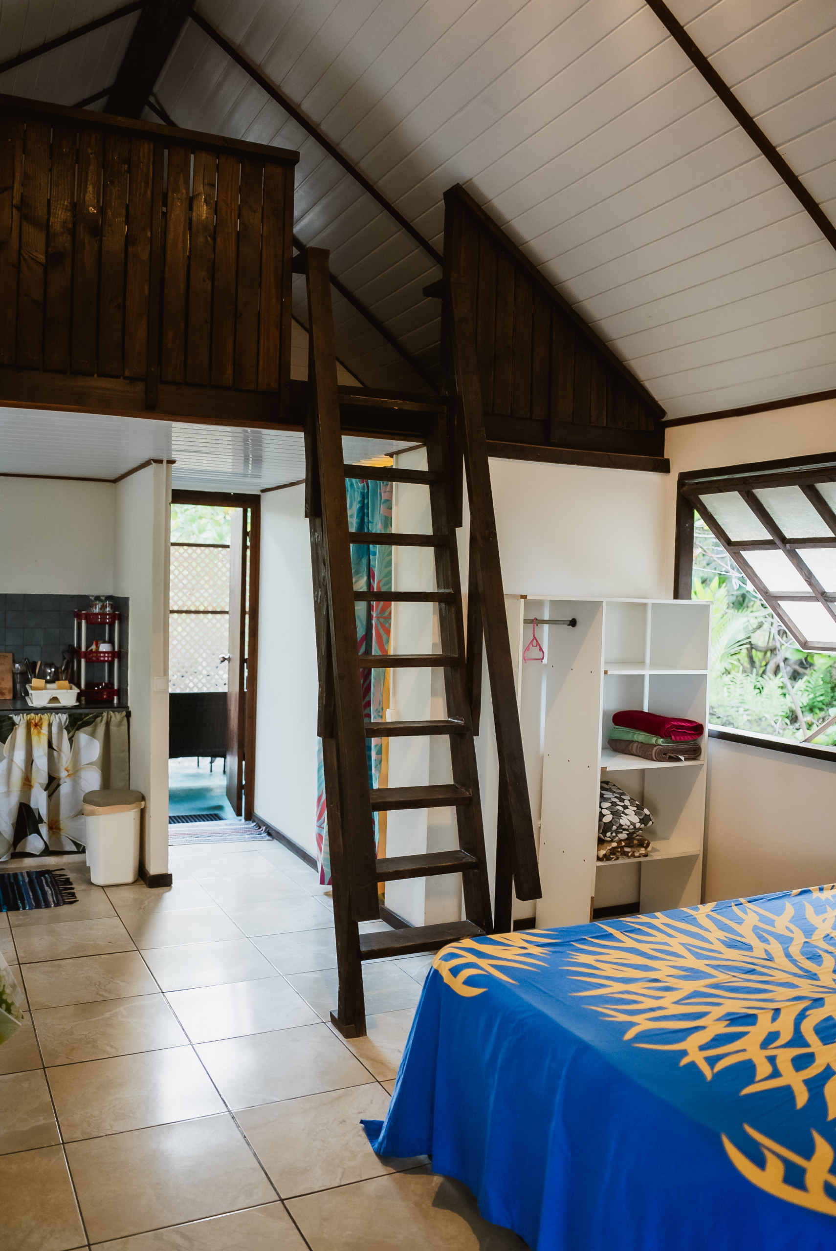 Progettato per ospitare una coppia o una piccola famiglia di massimo 4 persone, il bungalow offre una zona giorno principale con una zona notte per la coppia, più un soppalco con un letto matrimoniale per gli altri due occupanti. Il bagno privato è dotato di doccia e servizi igienici. La cucina completamente attrezzata consente di preparare i pasti in loco. Il padrone di casa sarà lieto di indicarvi il minimarket, gli snack bar e i fornitori di attività più vicini.