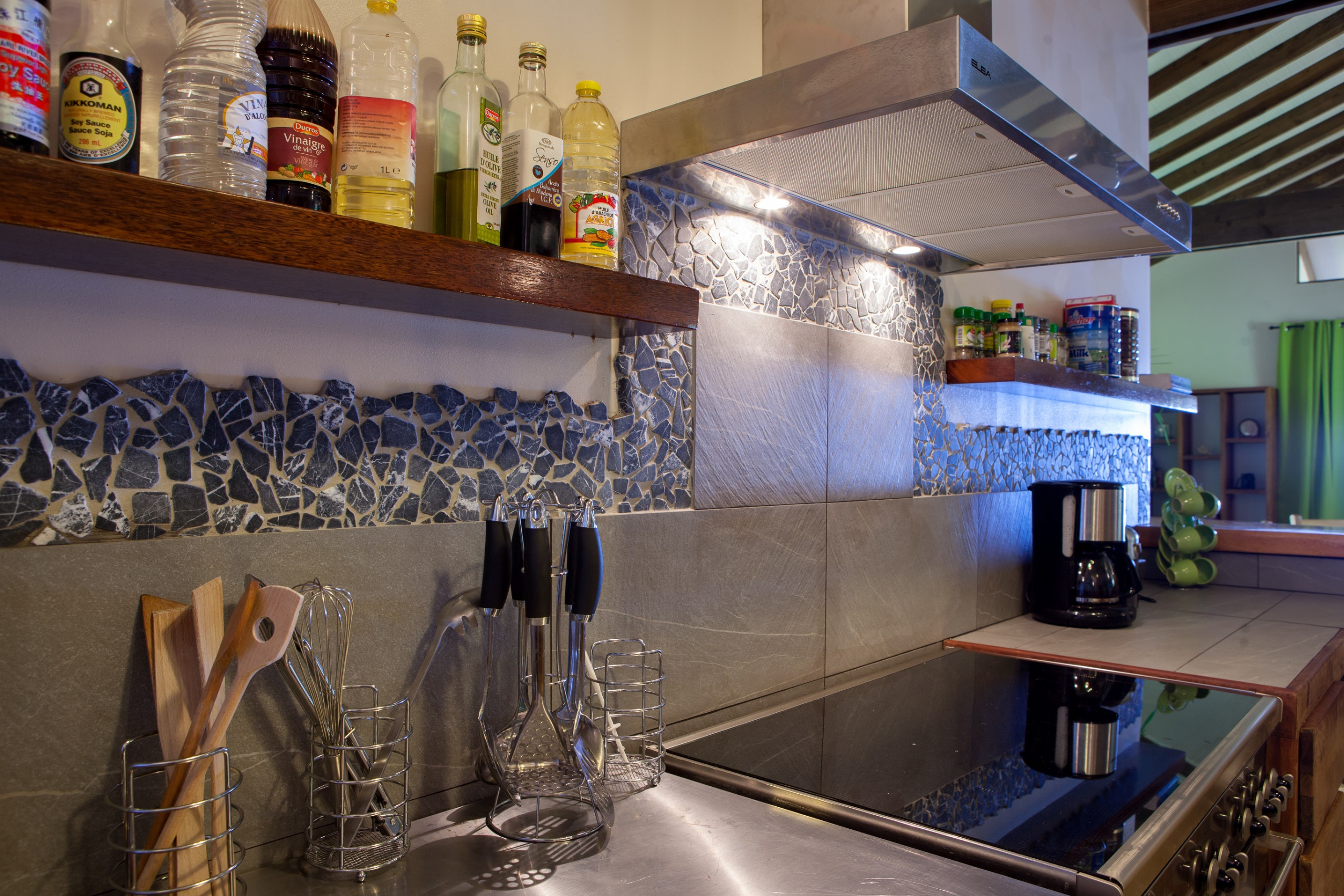 Dal lato del soggiorno, la cucina in stile americano, dotata di un ampio bancone, si apre su un ampio e confortevole soggiorno. Una connessione internet è a vostra disposizione.