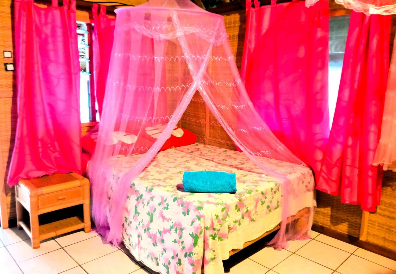 De construction locale, il est simple, pratique et vous offrira tout le nécessaire pour passer de douces nuits tropicales en bord de lagon. La chambre est spacieuse avec 1 lit double et 1 lit simple, un brasseur d’air est à disposition ainsi qu’une étagère pour vos effets personnel.