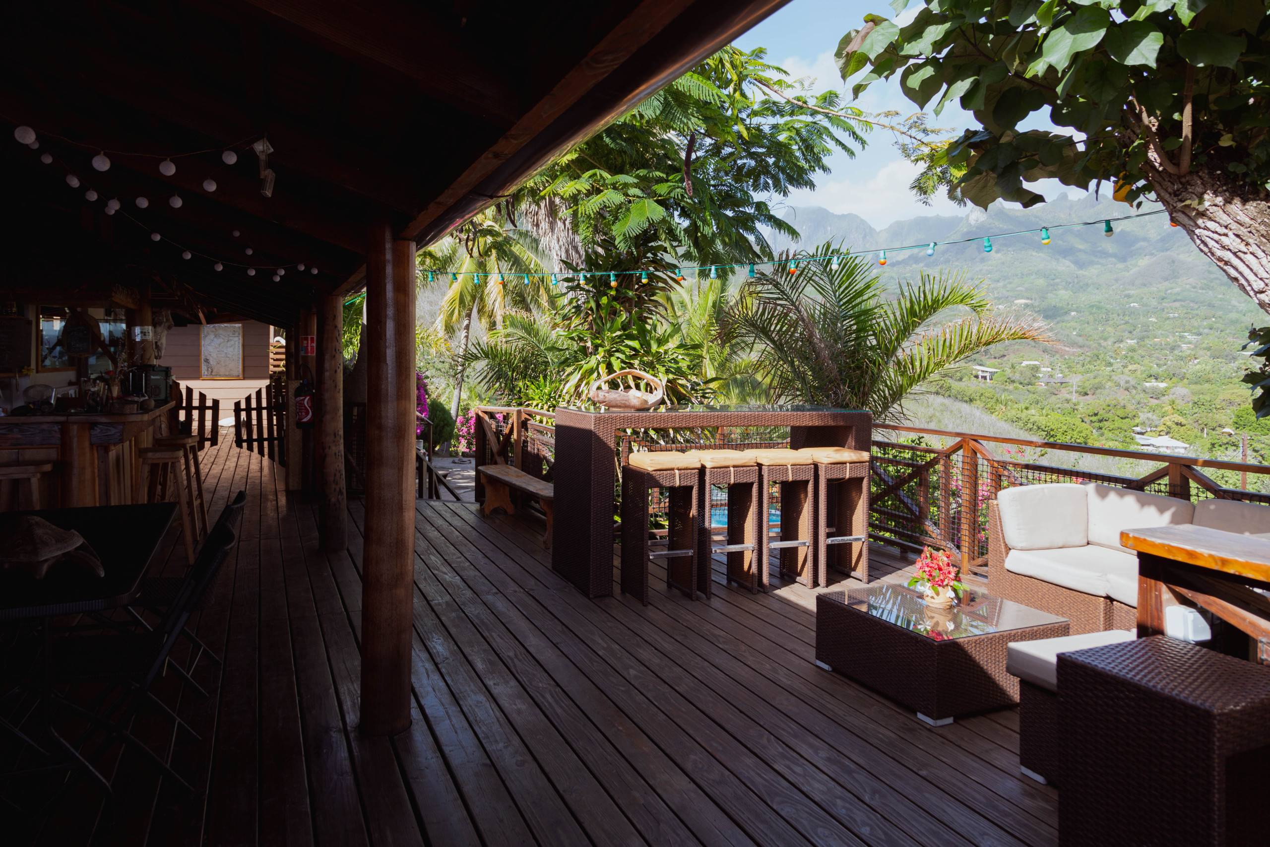 La chambre est dépourvu de cuisine, en revanche le tarif comprend la demi-pension (petit-déjeuner et dîner). Vous pourrez savourer des spécialités Marquisiennes selon la saison au restaurant situé au niveau de la terrasse.