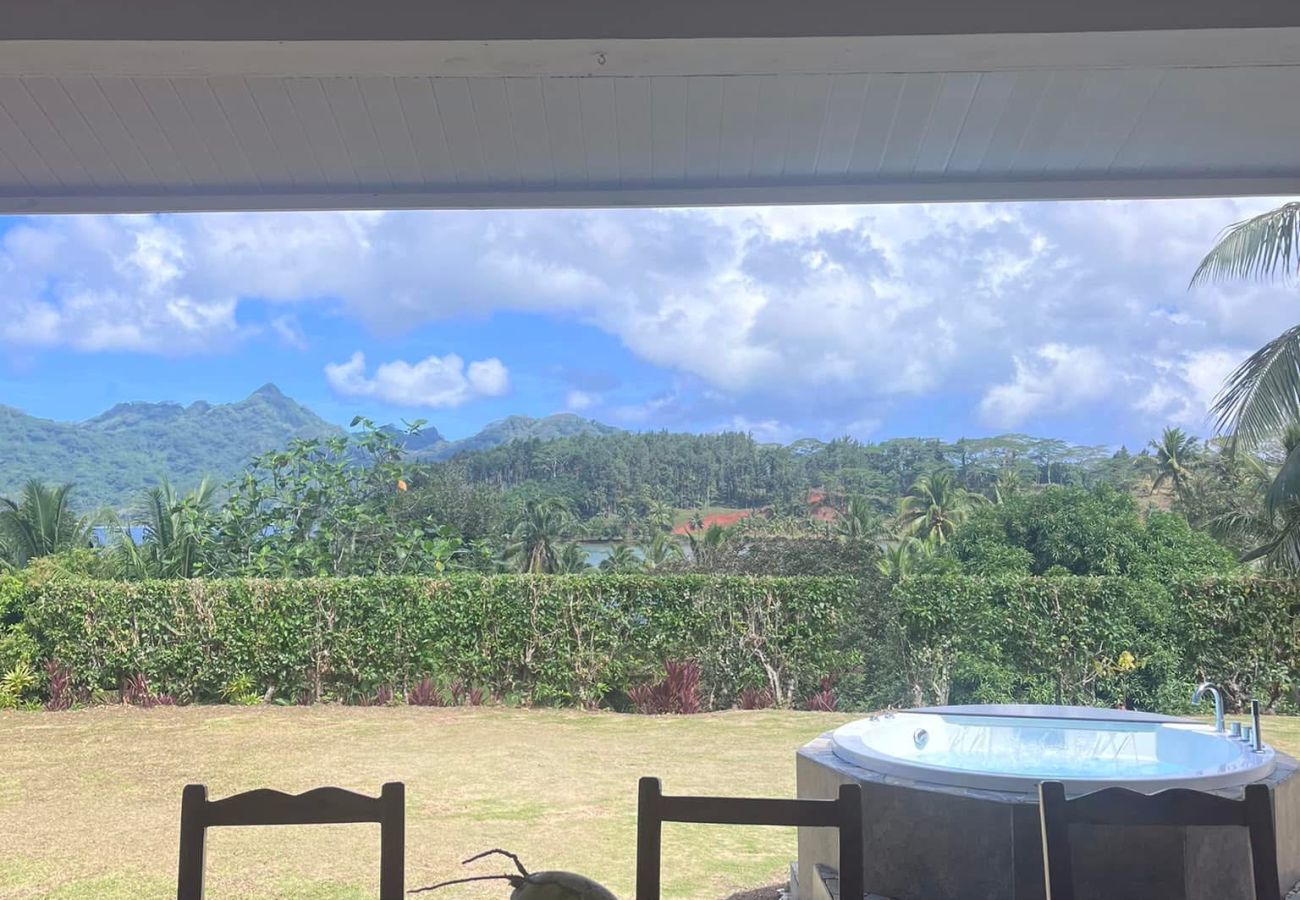 Votre lieu favori sera la terrasse où vous pourrez vous détendre, prendre vos repas et préparer vos barbecues... et surtout profiter du Jacuzzi à votre disposition! La villa bénéficie aussi d'un très grand jardin arboré qui offre un terrain de jeu idéal pour petits et grands. En contre bas de la propriété il y a la rivière de Maroe, lieu chargé de "Mana" et une plantation de noni.