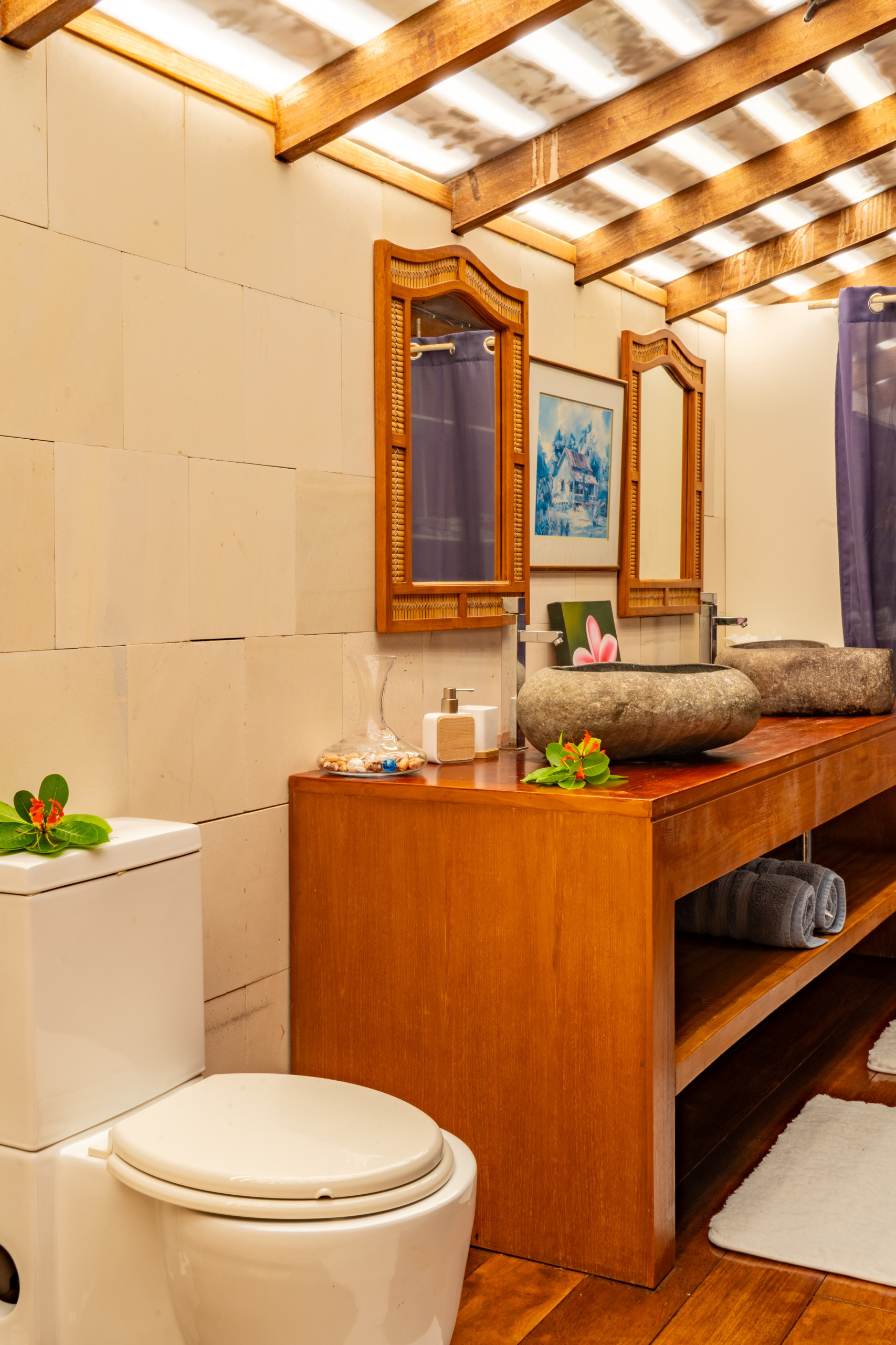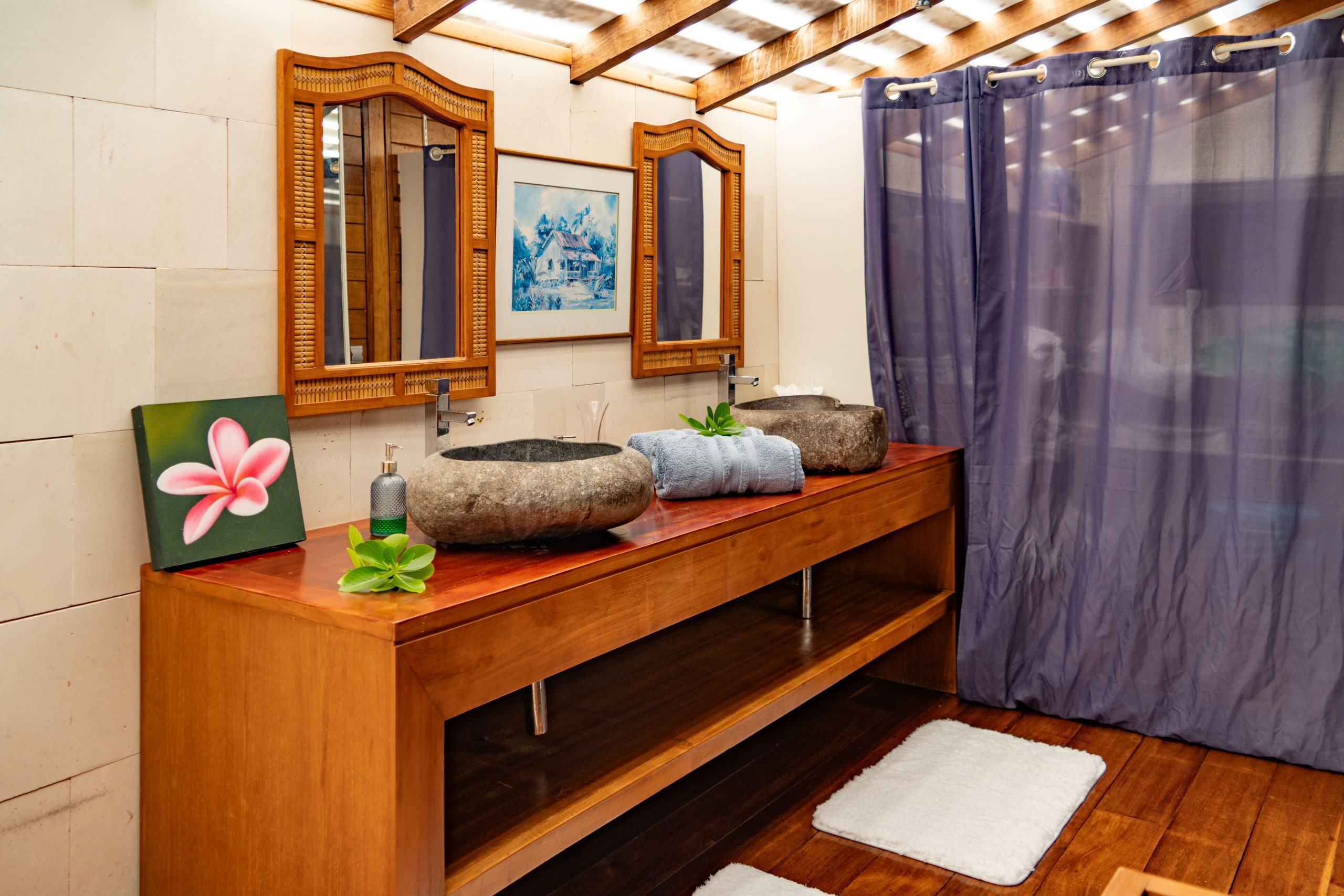 A villa é um verdadeiro refúgio de paz, elegância e luxo, oferecendo uma ligação à internet wifi de alta velocidade (fibra) para permanecer conectado ao resto do mundo. O espaçoso espaço de estar divide-se em dois espaços: por um lado, uma vasta sala de mais de 100 m² decorada em total harmonia, combinando um estilo local com um toque de modernidade para o máximo conforto, com sofá, matraquilhos, mesas e cadeiras, e enormes janelas de vidro que lhe oferecem uma vista soberba sobre a lagoa e a piscina; e, por outro lado, uma cozinha moderna e totalmente equipada para satisfazer o paladar dos seus convidados.